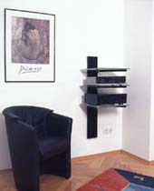 Kabelführung und auf schwingungsdämpfendem Neopren gelagertem Glas. Durch die stufenlos höhenverstellbaren Fachböden kann das Möbel an die verschiedensten Komponenten angepasst und auch horizontal montiert werden . Die Aluminiumprofile sind in den Farben schwarz und struktursilber lieferbar. Die Floatglasböden sind in den Ausführungen mattiert und klar verfügbar. Die linea Modelle sind durch zusätzliche Fachböden erweiterbar.
